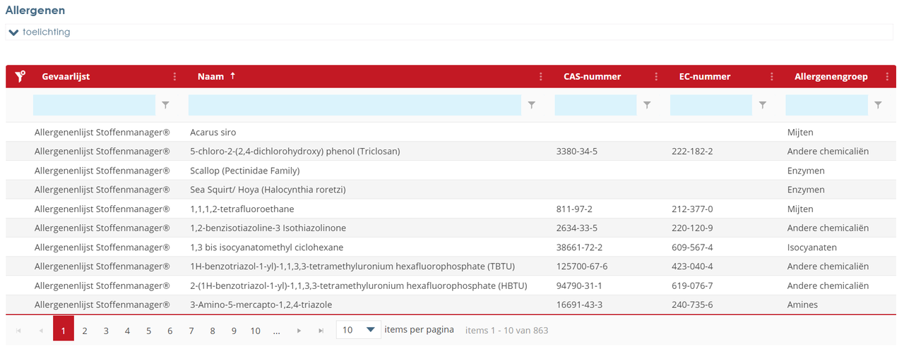 U ziet hier alle allergenen die in Stoffenmanager® zijn opgenomen.